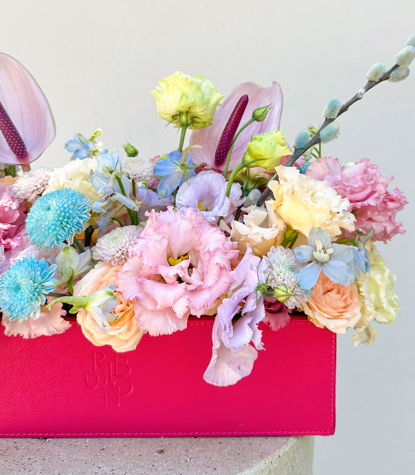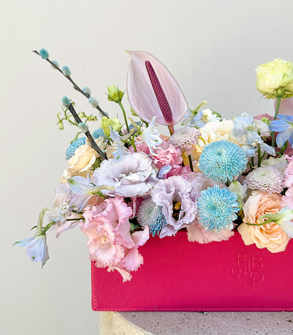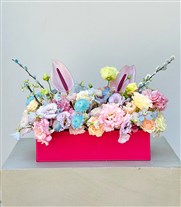 Bunny Pembe Deri Kutuda Lila Pembe Çiçekler