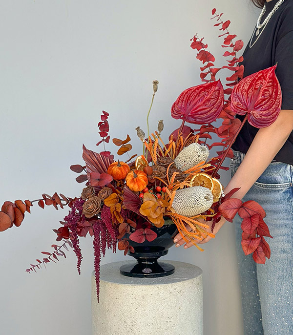 Harvest Glow Siyah Cam Vazoda Kuru Çiçek Aranjmanı