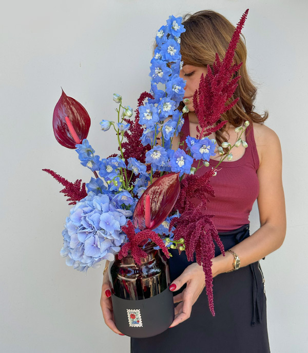 Palation Bloom Stamp Mavi Ortanca Delfinyum Aranjmanı