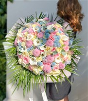 Pembe top anastasyalar, pembe ve beyaz ekvator gülleri, beyaz galalar, traspi, okaliptus ve fenix yeşillikleri ile hazırlanmıştır.